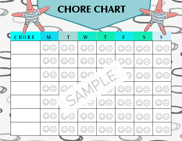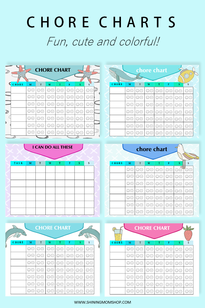Six (6) fun chore chart templates